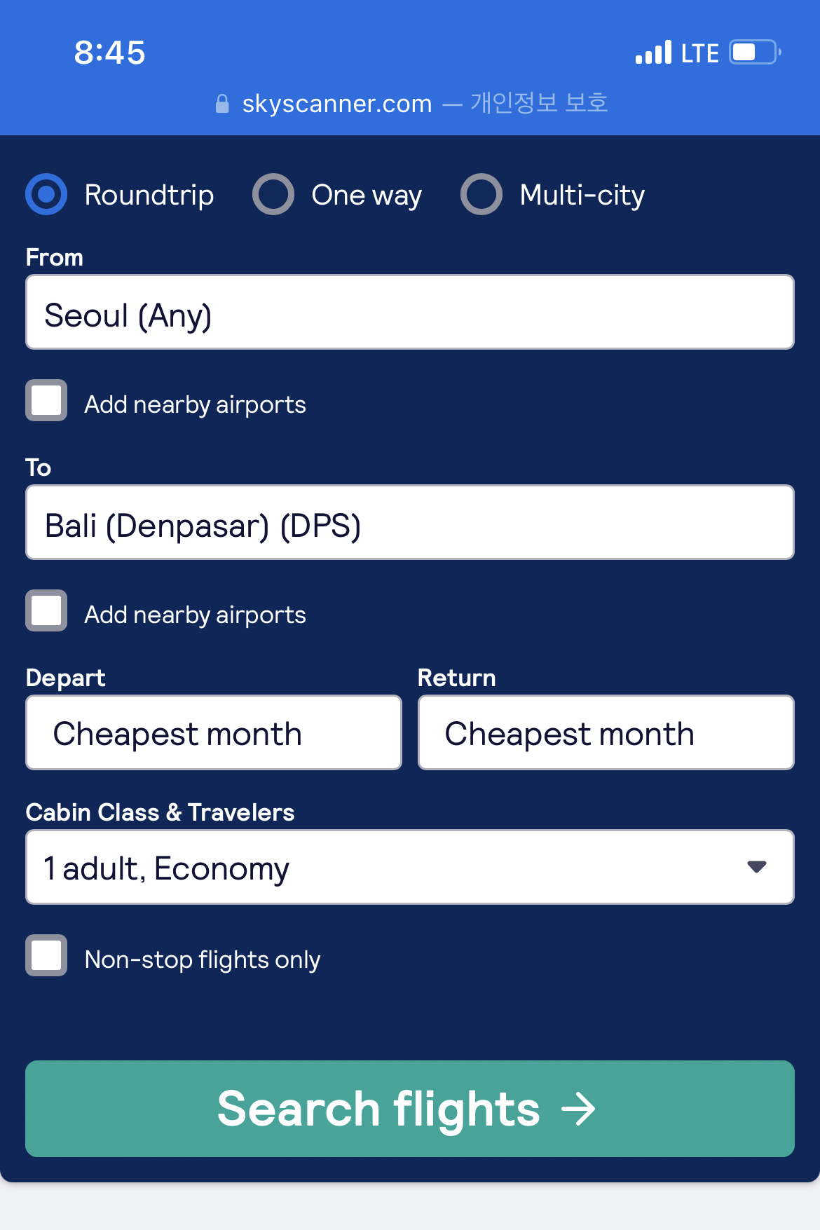 스카이 스캐너로 최저가를 조회하면 23년 2월이 제일 싸다고 조회가 되네요~